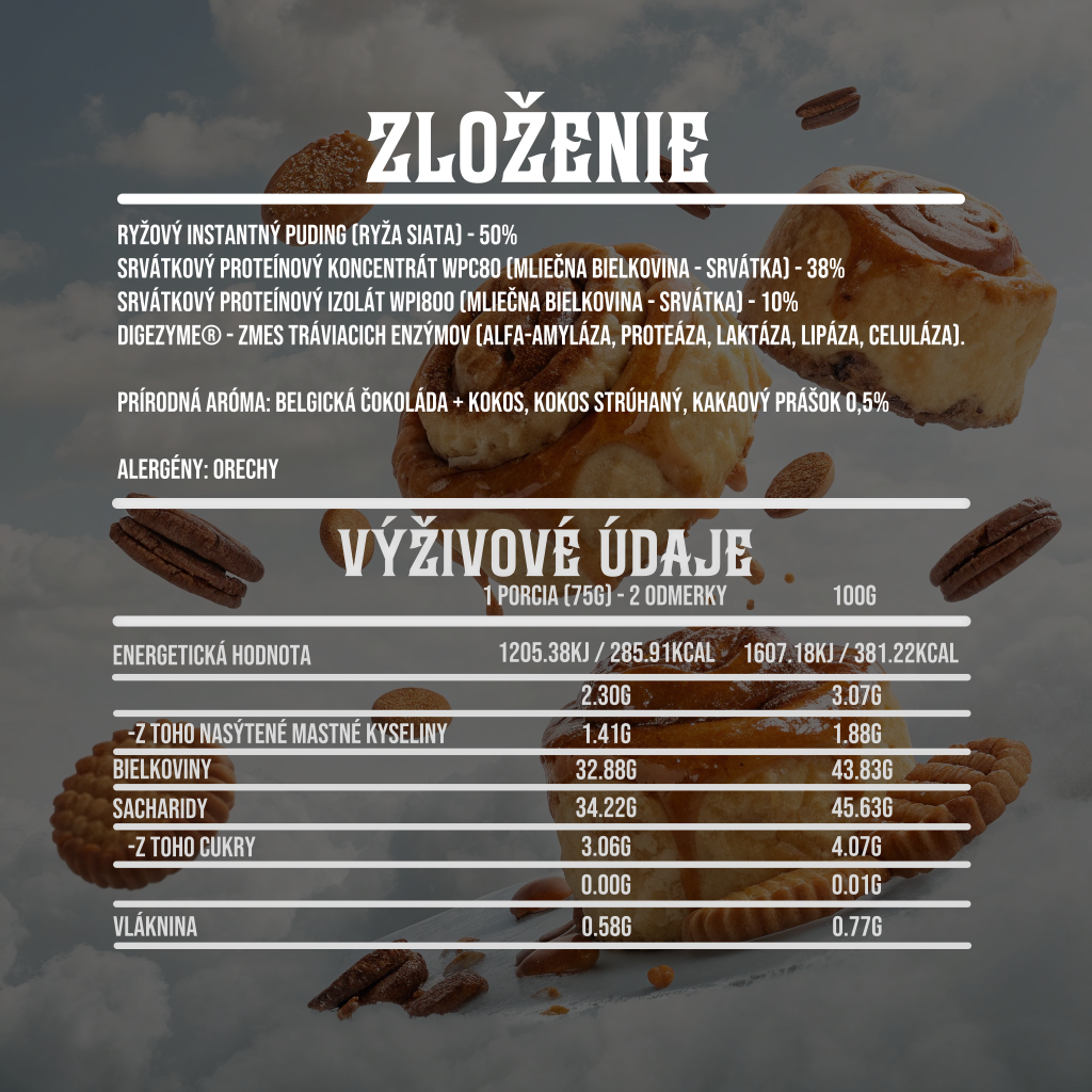 NA ETIKETE JE ZLE UVEDENÁ ARÓMA! OSPRAVEDLŇUJEME SA ZA TÚTO CHYBU, SPRÁVNA PRÍRODNÁ ARÓMA: KARAMEL, CEJLÓNSKA ŠKORICA 1%, KOKOSOVÝ CUKOR 1%